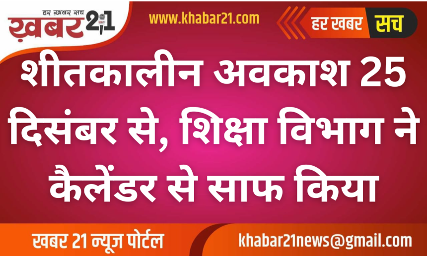 राजस्थान के सरकारी और निजी स्कूलों में इस वर्ष भी शीतकालीन अवकाश 25 दिसंबर से शुरू होगा और 5 जनवरी तक जारी रहेगा। शिक्षा विभाग द्वारा जारी दिसंबर माह के शैक्षिक कैलेंडर ने स्पष्ट कर दिया है कि दिसंबर में स्कूल कुल 21 दिन संचालित रहेंगे और 25 दिसंबर से पहले रविवार को छोड़कर कोई अतिरिक्त अवकाश निर्धारित नहीं है।