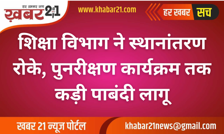 राजस्थान शिक्षा विभाग ने एसआईआर से जुड़े कार्यों और आगामी विशेष गहन मतदाता पुनरीक्षण कार्यक्रम के चलते शिक्षकों और अन्य विभागीय कर्मचारियों के स्थानांतरण पर रोक लगाने का महत्वपूर्ण निर्णय लिया है। इस संबंध में विभाग के संयुक्त निदेशक (प्रशिक्षण) ने सभी संयुक्त निदेशकों और जिला शिक्षा अधिकारियों को आधिकारिक पत्र जारी किया है। यह कार्रवाई प्रशासनिक सुधार एवं समन्वय विभाग के शासन सचिव डॉ. जोगाराम के निर्देशों के बाद की गई है।
