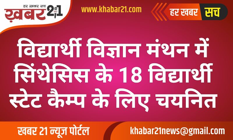 विद्यार्थी विज्ञान मंथन में सिंथेसिस के 18 विद्यार्थी स्टेट कैम्प के लिए चयनित, बीकानेर के विद्यार्थियो ने पाई सफलता