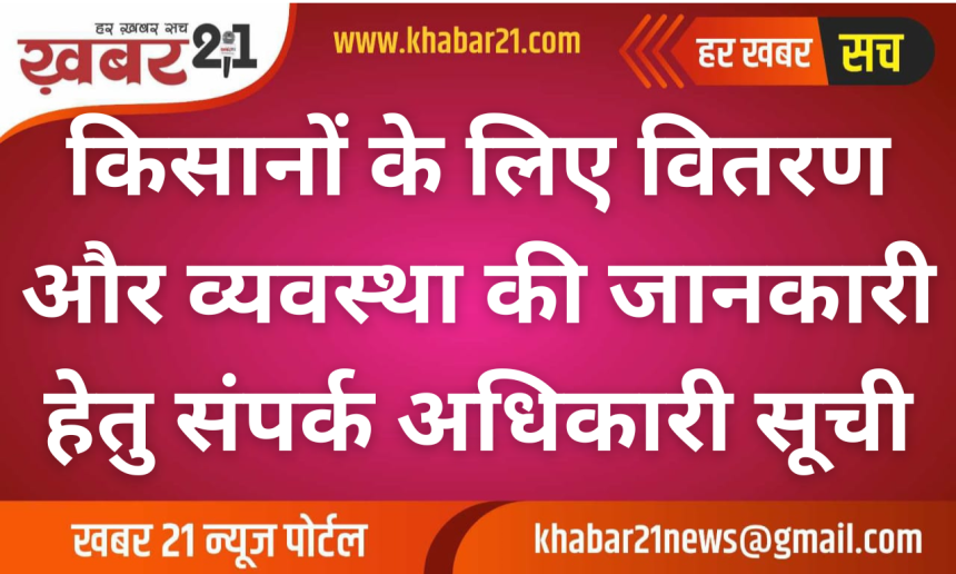 Khabar21 > Blog > बीकानेर > किसानों के लिए वितरण और व्यवस्था की जानकारी हेतु संपर्क अधिकारी सूची