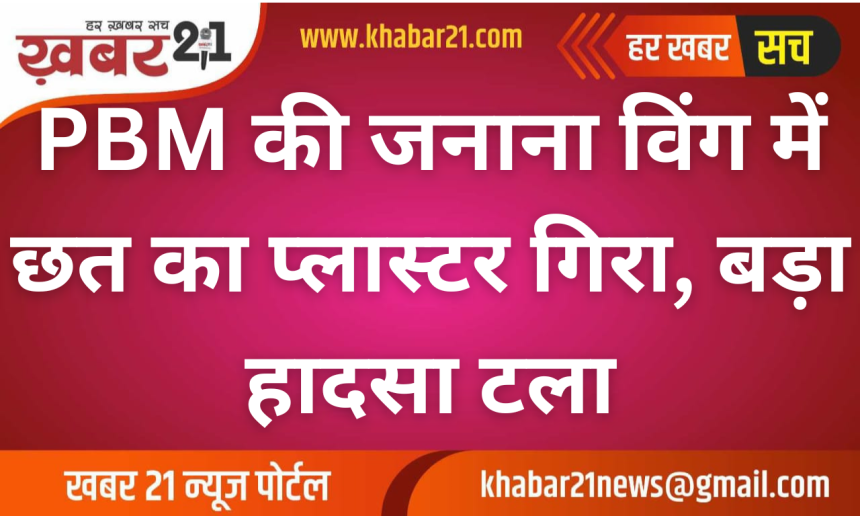 पीबीएम अस्पताल में बड़ा हादसा टला, जनाना विंग की छत का प्लास्टर अचानक गिरा