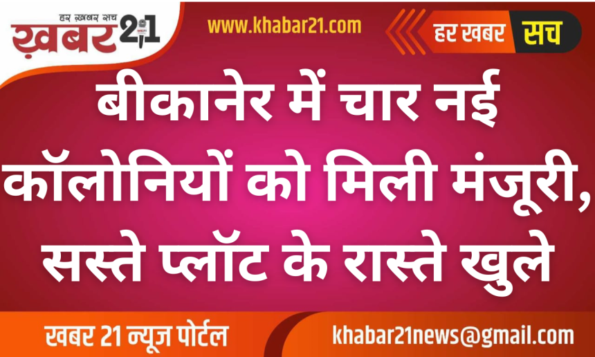 Khabar21 > Blog > बीकानेर > बीकानेर में चार नई कॉलोनियों को मिली मंजूरी, सस्ते प्लॉट के रास्ते खुले