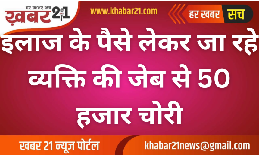 इलाज के पैसे लेकर जा रहे व्यक्ति की जेब से 50 हजार चोरी