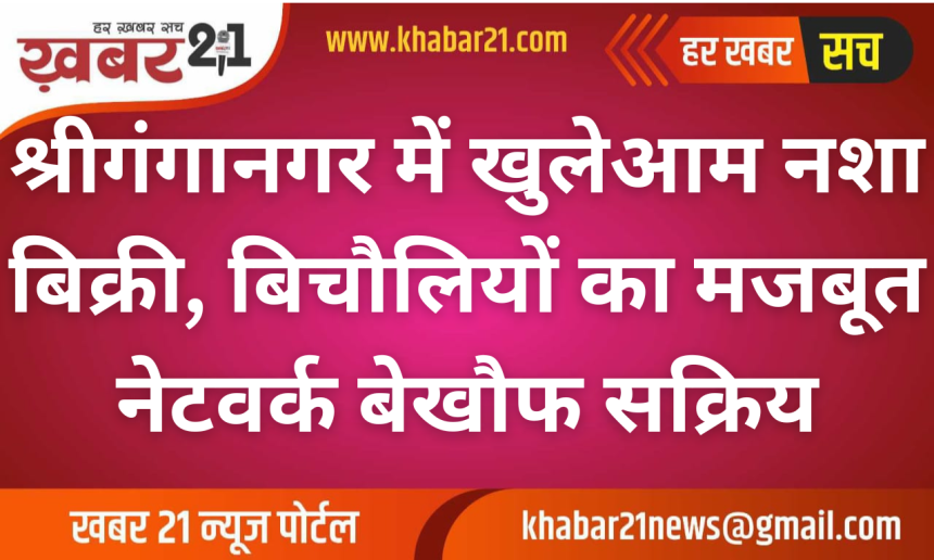 Khabar21 > Blog > राजस्थान > श्रीगंगानगर में खुलेआम नशा बिक्री, बिचौलियों का मजबूत नेटवर्क बेखौफ सक्रिय