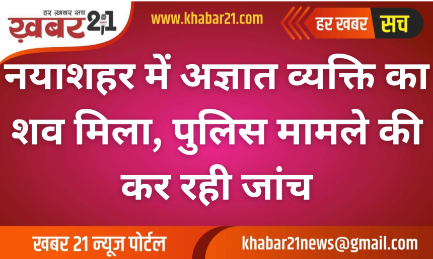 शहर के नयाशहर थाना क्षेत्र में एक अज्ञात व्यक्ति का शव मिलने से सनसनी फैल गई है। यह घटना माहेश्वरी सदन के पास सामने आई, जहां एक मकान के बाहर व्यक्ति अचेत अवस्था में पड़ा मिला। स्थानीय लोगों ने तुरंत पुलिस को इसकी सूचना दी।