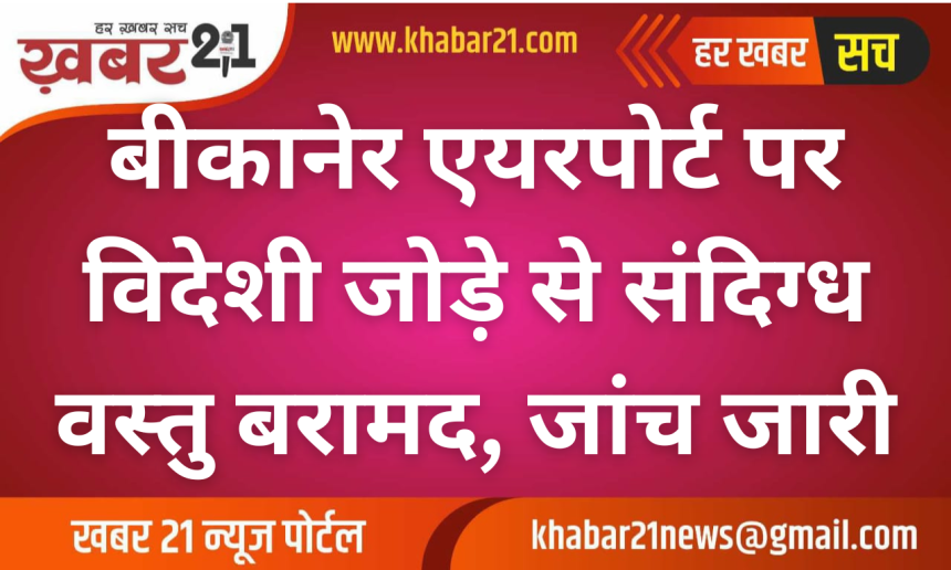 बीकानेर एयरपोर्ट पर उस समय हड़कंप मच गया जब एक विदेशी जोड़े के पास जानवर के सिर जैसा दिखने वाला संदिग्ध सामान मिलने की सूचना सामने आई। जानकारी मिलते ही सुरक्षा एजेंसियां अलर्ट हो गईं और विदेश से आए इस जोड़े को रोककर उनके सामान की तलाशी ली गई। तलाशी के दौरान एक ऐसी वस्तु मिली, जो प्रथम दृष्टया किसी जानवर के सिर या उसके अवशेष जैसी प्रतीत हो रही थी। इसके बाद दोनों विदेशी नागरिकों को वन विभाग की टीम के हवाले कर दिया गया।