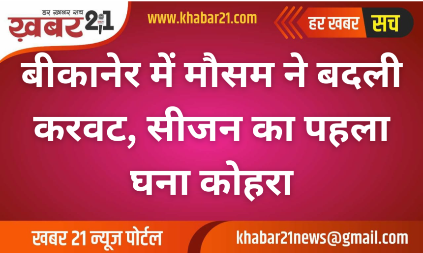 मंगलवार की सुबह बीकानेर जिले के लोगों के लिए सर्दी का साफ संदेश लेकर आई। शहर और आसपास के ग्रामीण इलाकों में इस सर्दी के मौसम का पहला घना कोहरा देखने को मिला, जिससे तापमान में अचानक गिरावट दर्ज की गई। सुबह के समय दृश्यता बेहद कम रही और ठंड का असर आम जनजीवन पर साफ नजर आया।