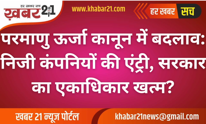 Khabar21 > Blog > देश-दुनिया > परमाणु ऊर्जा कानून में बदलाव: निजी कंपनियों की एंट्री, सरकार का एकाधिकार खत्म?