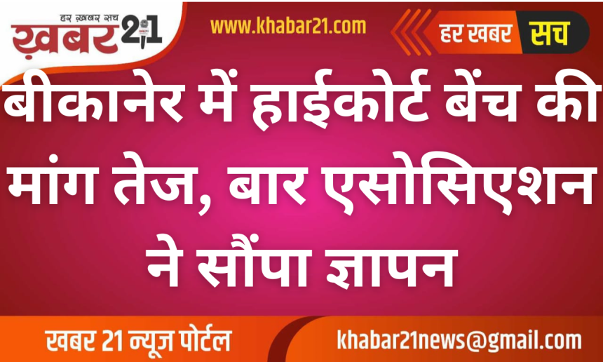 Khabar21 > Blog > बीकानेर > बीकानेर में हाईकोर्ट बेंच की मांग तेज, बार एसोसिएशन ने सौंपा ज्ञापन