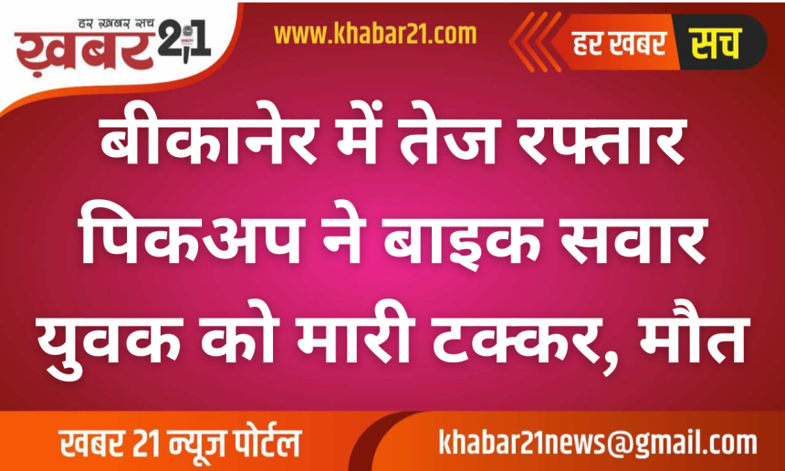 Khabar21 > Blog > बीकानेर > बीकानेर में तेज रफ्तार पिकअप ने बाइक सवार युवक को मारी टक्कर, मौत