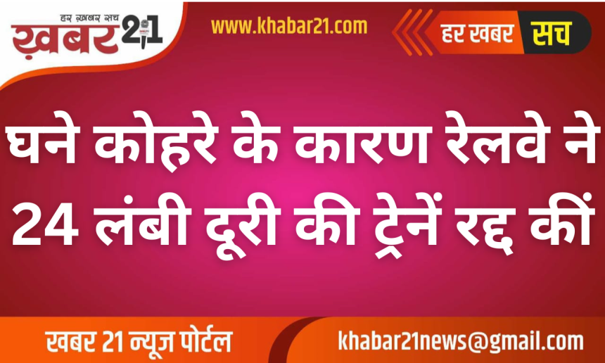 उत्तर भारत में सर्दी के साथ ही घने कोहरे का असर दिखने लगा है। इसी को देखते हुए भारतीय रेलवे ने यात्रियों की सुरक्षा को प्राथमिकता देते हुए बड़ा निर्णय लिया है। रेलवे ने करीब तीन महीने के लिए 24 लंबी दूरी की ट्रेनों को पूरी तरह रद्द करने का फैसला किया है। यह कदम हर साल सर्दियों के मौसम में लिया जाता है, जब कोहरे के कारण रेल परिचालन पर सीधा असर पड़ता है।