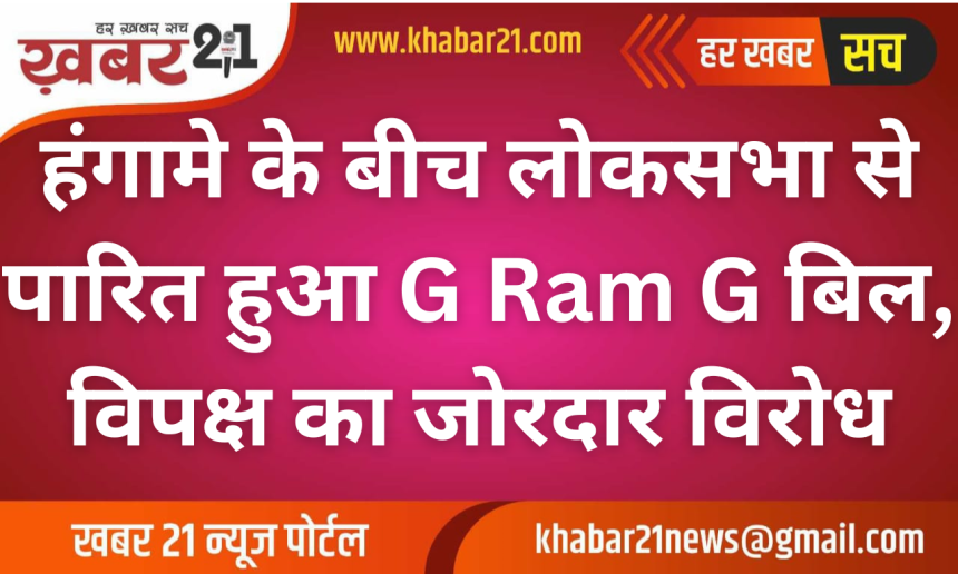Khabar21 > Blog > देश-दुनिया > हंगामे के बीच लोकसभा से पारित हुआ G Ram G बिल, विपक्ष का जोरदार विरोध