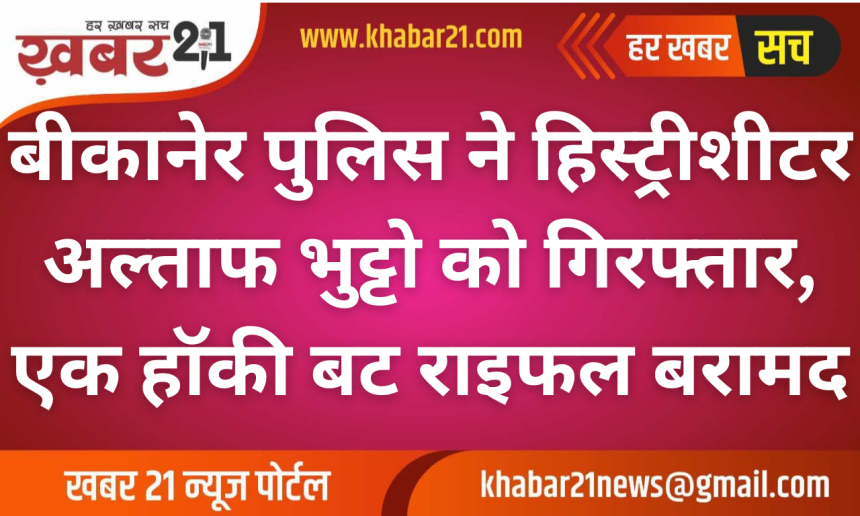 बीकानेर पुलिस ने एक बड़ी सफलता हासिल करते हुए हिस्ट्रीशीटर अल्ताफ भुट्टो को गिरफ्तार किया है। यह कार्रवाई सदर पुलिस और डीएसटी टीम की संयुक्त कार्रवाई में की गई, जो एसपी के निर्देशन में की गई थी। अल्ताफ भुट्टो एक बेहद वांछित अपराधी था, जो लंबे समय से फरार था। पुलिस ने उसके कब्जे से एक हॉकी बट राइफल भी बरामद की है।