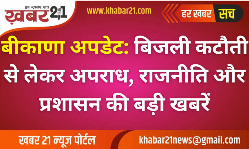 बीकानेर से आज की प्रमुख घटनाओं को एक साथ समेटते हुए यह अपडेट प्रशासनिक गतिविधियों, कानून-व्यवस्था, सामाजिक कार्यक्रमों और राजनीतिक आयोजनों की अहम तस्वीर पेश करता है।