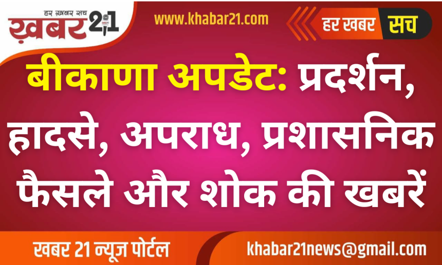 आज का दिन बीकानेर संभाग के लिए घटनाओं से भरा रहा। कहीं अंतरराष्ट्रीय मुद्दे पर आक्रोश दिखा तो कहीं हादसे, अपराध और प्रशासनिक फैसलों ने सुर्खियां बटोरीं। प्रस्तुत है आज का समग्र बीकानेर अपडेट।