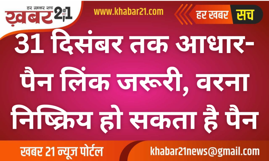 Khabar21 > Blog > देश-दुनिया > 31 दिसंबर तक आधार-पैन लिंक जरूरी, वरना निष्क्रिय हो सकता है पैन