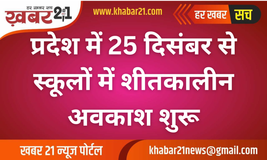 प्रदेश के स्कूली बच्चों के लिए राहत भरी खबर है। 25 दिसंबर से राज्यभर के स्कूलों में शीतकालीन अवकाश की शुरुआत हो रही है। क्रिसमस के दिन से शुरू होने वाली ये छुट्टियां कई जिलों में दिसंबर के आखिरी सप्ताह तक चलेंगी, जबकि कुछ राज्यों और क्षेत्रों में अवकाश 5 जनवरी तक घोषित किया गया है।