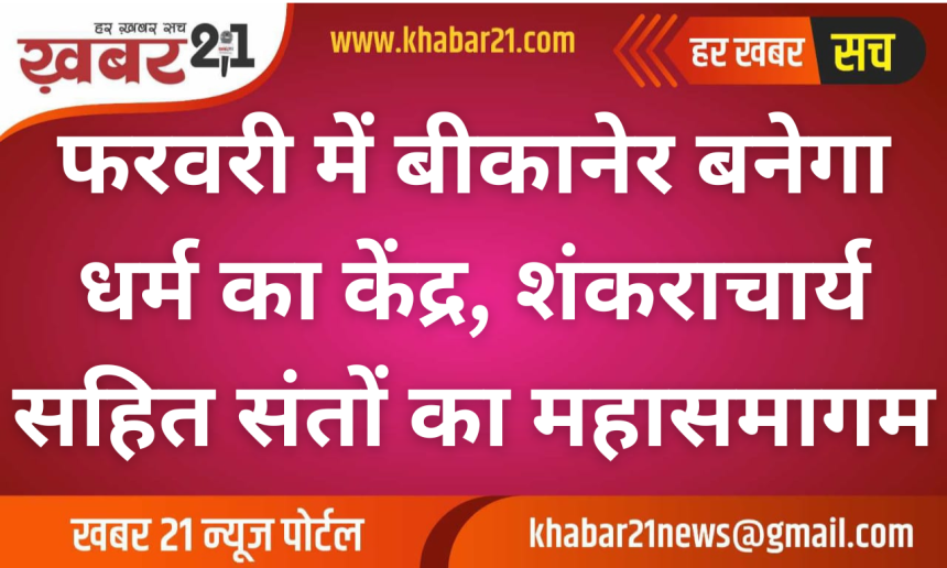 बीकानेर। छोटी काशी के नाम से प्रसिद्ध बीकानेर शहर आगामी फरवरी माह में बड़े धार्मिक और आध्यात्मिक आयोजनों का साक्षी बनने जा रहा है। इन आयोजनों को लेकर तैयारियां अब अंतिम चरण में पहुंच चुकी हैं। सनातन धर्म रक्षा समिति के अध्यक्ष सुरेन्द्र सिंह राजपुरोहित ने बताया कि बीकानेर में पहले ही दो शंकराचार्य का आगमन हो चुका है, जबकि तीसरे शंकराचार्य का आगमन शीघ्र प्रस्तावित है।