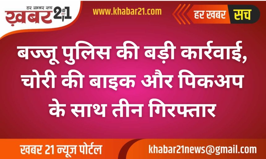 Khabar21 > Blog > बीकानेर > बज्जू पुलिस की बड़ी कार्रवाई, चोरी की बाइक और पिकअप के साथ तीन गिरफ्तार