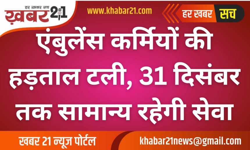 Khabar21 > Blog > बीकानेर > एंबुलेंस कर्मियों की हड़ताल टली, 31 दिसंबर तक सामान्य रहेगी सेवा