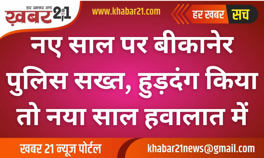बीकानेर। नववर्ष के जश्न को शांतिपूर्ण और सुरक्षित बनाने के लिए बीकानेर जिला पुलिस प्रशासन पूरी तरह अलर्ट मोड पर आ गया है। शहर और जिलेभर में होने वाले कार्यक्रमों, पार्टियों और सार्वजनिक आयोजनों को लेकर सुरक्षा व्यवस्था कड़ी कर दी गई है। पुलिस अधिकारियों ने साफ शब्दों में चेतावनी दी है कि कानून व्यवस्था से खिलवाड़ करने वालों के लिए इस बार कोई रियायत नहीं होगी।