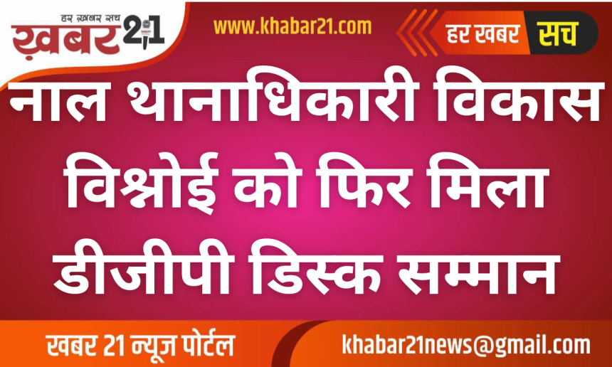 Khabar21 > Blog > बीकानेर > नाल थानाधिकारी विकास विश्नोई को फिर मिला डीजीपी डिस्क सम्मान