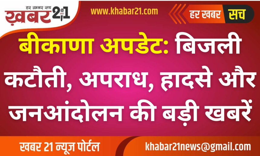 Khabar21 > Blog > बीकानेर > बीकाणा अपडेट: बिजली कटौती, अपराध, हादसे और जनआंदोलन की बड़ी खबरें