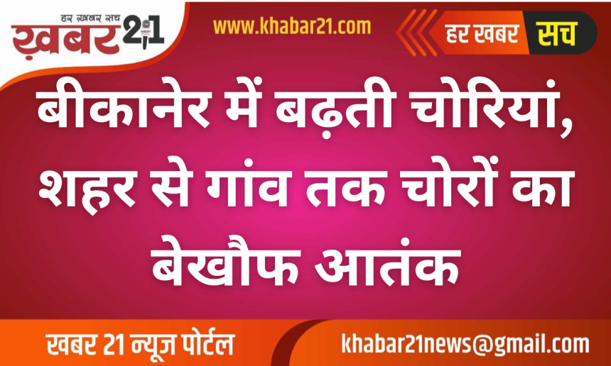 बीकानेर। जिले में चोरी की वारदातें लगातार बढ़ती जा रही हैं। शहरी इलाकों से लेकर ग्रामीण क्षेत्रों तक चोर बेखौफ होकर घटनाओं को अंजाम दे रहे हैं। हालात ऐसे हो गए हैं कि आमजन खुद को असुरक्षित महसूस करने लगा है और पुलिस की कार्यप्रणाली पर भी सवाल उठने लगे हैं। अलग-अलग थाना क्षेत्रों से सामने आए मामलों ने यह साफ कर दिया है कि चोर किसी एक इलाके तक सीमित नहीं हैं।
