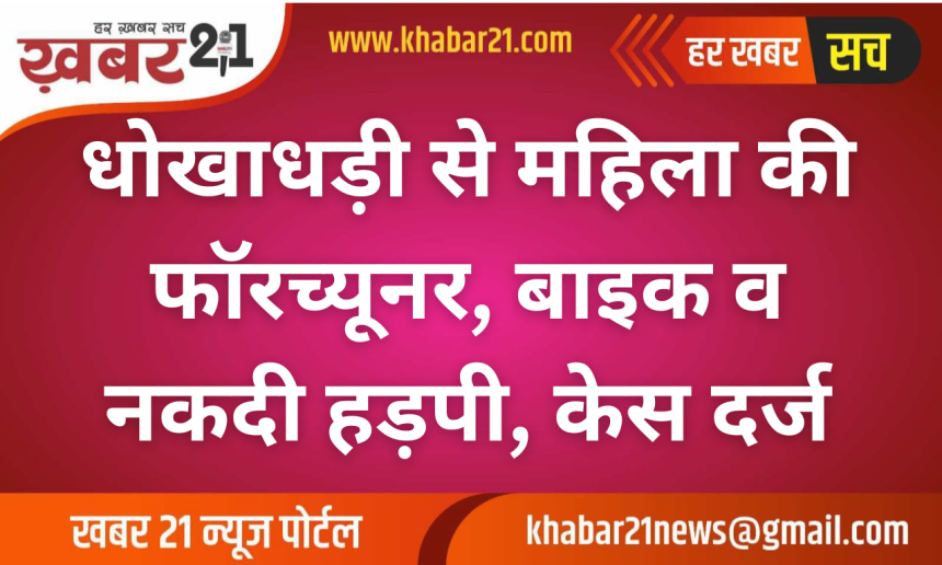 श्रीडूंगरगढ़। क्षेत्र में एक महिला से सुनियोजित तरीके से धोखाधड़ी कर कीमती वाहन और नकदी ले जाने का मामला सामने आया है। पीड़िता की शिकायत पर सेरुणा थाना पुलिस ने आरोपियों के खिलाफ धोखाधड़ी का प्रकरण दर्ज कर जांच शुरू कर दी है।