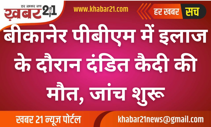 बीकानेर से एक खबर सामने आई है, जहां केंद्रीय कारागृह से इलाज के लिए भेजे गए एक दंडित बंदी की पीबीएम अस्पताल में मौत हो गई। इस मामले को लेकर सदर पुलिस थाने में सूचना दर्ज कराई गई है, जिसके आधार पर पुलिस ने मर्ग दर्ज कर जांच शुरू कर दी है।
