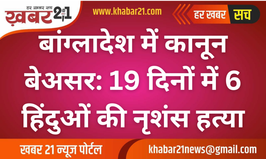 बांग्लादेश में एक बार फिर हिंसा ने सिर उठा लिया है। हाल के हफ्तों में हिंदू समुदाय को निशाना बनाए जाने की खबरों ने देश की कानून-व्यवस्था और अल्पसंख्यकों की सुरक्षा पर गंभीर सवाल खड़े कर दिए हैं। विभिन्न रिपोर्टों के अनुसार, बीते 19 दिनों में हिंदू समुदाय के छह लोगों की अलग-अलग घटनाओं में हत्या की गई है। इन घटनाओं के बाद देशभर में डर और असुरक्षा का माहौल है।