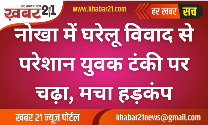 बीकानेर जिले के नोखा कस्बे में गुरुवार तड़के उस समय अफरा-तफरी मच गई, जब एक युवक घरेलू तनाव के चलते पानी की टंकी पर चढ़ गया। यह घटना मोहनपुरा क्षेत्र की बताई जा रही है, जहां सुबह के शांत माहौल में अचानक लोगों की भीड़ जमा हो गई।