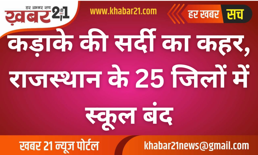 राजस्थान में सर्दी का प्रकोप लगातार बढ़ता जा रहा है। राजधानी जयपुर सहित प्रदेश के कई हिस्सों में बुधवार को लगातार तीसरे दिन सुबह से घना कोहरा छाया रहा। शीतलहर और गिरते तापमान के कारण आम जनजीवन बुरी तरह प्रभावित हुआ है। हालात को देखते हुए राज्य के 25 से अधिक जिलों में स्कूलों में अवकाश घोषित किया गया है।