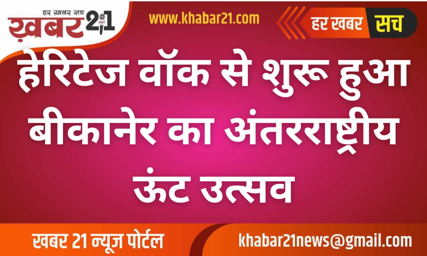 बीकानेर में तीन दिवसीय अंतरराष्ट्रीय ऊंट उत्सव का भव्य और रंगारंग आगाज आज नगर सेठ श्री लक्ष्मीनाथ जी मंदिर से हुआ। पारंपरिक हेरिटेज वॉक के साथ शुरू हुए इस उत्सव ने एक बार फिर बीकानेर की सांस्कृतिक विरासत, स्थापत्य कला और लोक परंपराओं को राष्ट्रीय-अंतरराष्ट्रीय मंच पर जीवंत कर दिया।