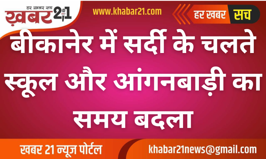 बीकानेर। बीकानेर समेत राजस्थान के कई हिस्सों में कड़ाके की ठंड और शीतलहर के मद्देनजर प्रशासन ने बड़ा आदेश जारी किया है। जिला कलक्टर बीकानेर ने सभी स्कूलों, मदरसों और आंगनबाड़ियों के समय में बदलाव की अधिसूचना जारी की है।