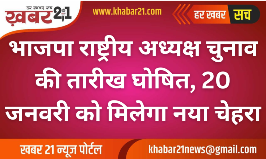 Khabar21 > Blog > राजनीति > भाजपा राष्ट्रीय अध्यक्ष चुनाव की तारीख घोषित, 20 जनवरी को मिलेगा नया चेहरा