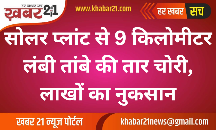 सोलर प्लांट से 9 किलोमीटर लंबी तांबे की तार चोरी, लाखों का नुकसान