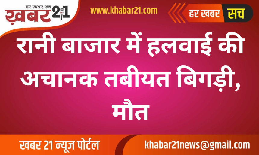 रानी बाजार के खंजाची भवन के सामने स्थित गली में 15 जनवरी दोपहर करीब 3 बजे एक दुखद घटना हुई, जिसमें हलवाई किशनलाल की अचानक तबीयत बिगड़ने से मौत हो गई।