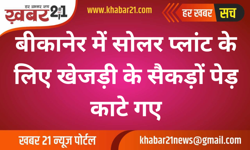 बीकानेर में सोलर प्लांट निर्माण के नाम पर खेजड़ी के सैकड़ों पेड़ काटे जाने से पर्यावरण प्रेमियों में गहरा आक्रोश फैल गया है। हाल ही के दो दिनों में पूगल तहसील के करणीसर भाटियान और भानीपुरा क्षेत्रों में कुल 647 खेजड़ी के पेड़ काटे गए।