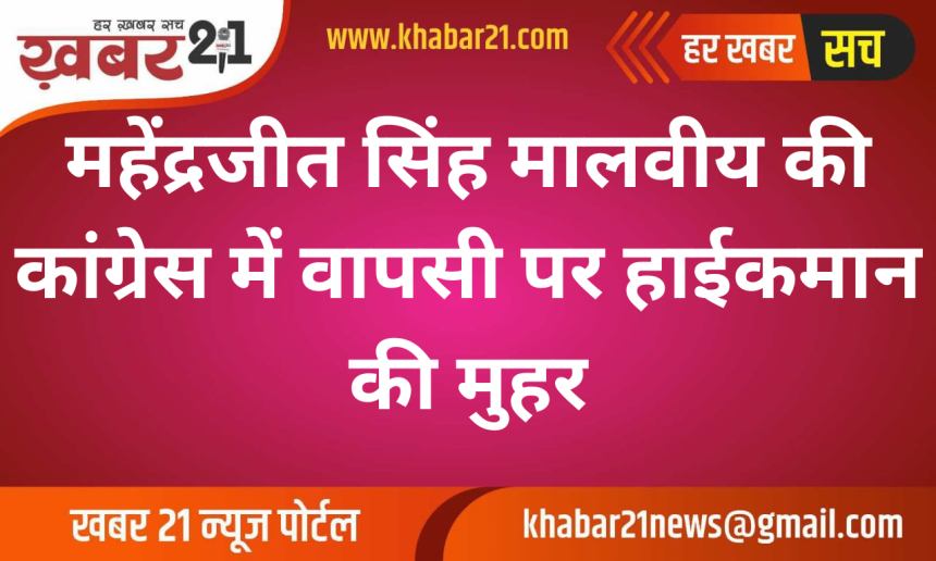 Khabar21 > Blog > राजनीति > महेंद्रजीत सिंह मालवीय की कांग्रेस में वापसी पर हाईकमान की मुहर