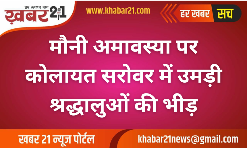 बीकानेर जिले के प्रसिद्ध तीर्थ स्थल कोलायत में रविवार को मौनी अमावस्या के अवसर पर आस्था का सैलाब उमड़ पड़ा। अलसुबह से ही आसपास के गांवों और दूर-दराज के इलाकों से श्रद्धालु कोलायत पहुंचे और पवित्र सरोवर में स्नान कर धार्मिक लाभ अर्जित किया। मान्यता है कि मौनी अमावस्या पर किया गया स्नान और दान विशेष पुण्य प्रदान करता है, इसी विश्वास के चलते बड़ी संख्या में लोग यहां एकत्रित हुए।