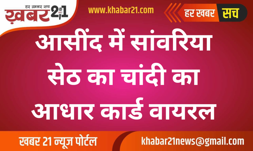 Khabar21 > Blog > राजस्थान > आसींद में सांवरिया सेठ का चांदी का आधार कार्ड वायरल