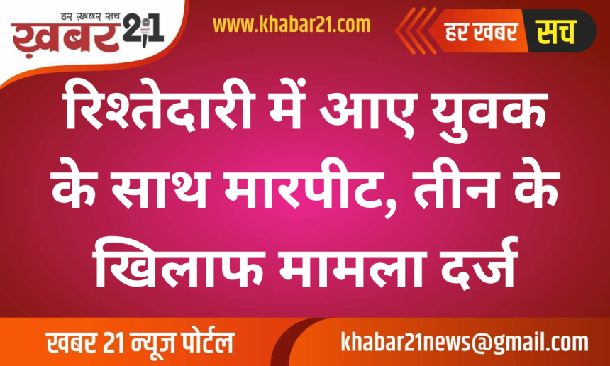 रिश्तेदारी में गए एक युवक के साथ मारपीट का मामला सामने आया है। इस संबंध में सदर पुलिस थाने में अनूपगढ़ निवासी और वर्तमान में भुट्टों का बास क्षेत्र में रह रहे शाहरून अली ने सलीम, आदिल और जाकीर के खिलाफ शिकायत दर्ज करवाई है।