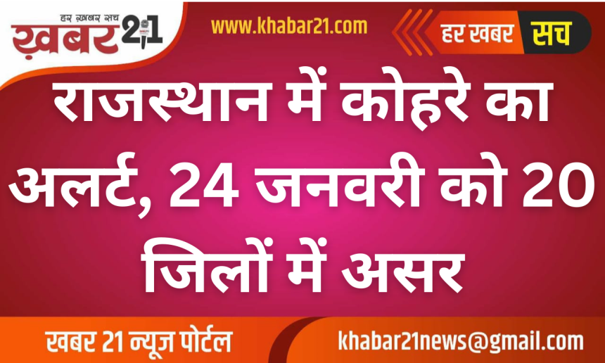 राजस्थान में मौसम ने एक बार फिर करवट ले ली है। ओलावृष्टि और तेज हवाओं के बाद अब प्रदेश के कई जिलों में घने कोहरे की चेतावनी जारी की गई है। मौसम विभाग के ताजा पूर्वानुमान के अनुसार 24 जनवरी को राज्य के करीब 20 जिलों में घना कोहरा छा सकता है, जिससे जनजीवन और यातायात प्रभावित होने की आशंका है।