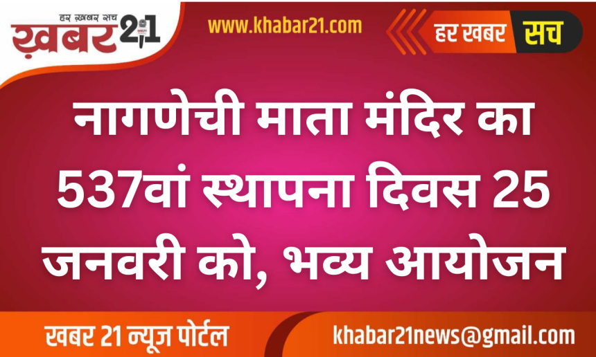 शहर के आस्था के प्रमुख केंद्र नागणेची माता मंदिर का 537वां स्थापना दिवस इस वर्ष 25 जनवरी को श्रद्धा और धार्मिक उल्लास के साथ मनाया जाएगा। स्थापना दिवस को लेकर मंदिर परिसर में तैयारियां शुरू हो चुकी हैं और श्रद्धालुओं में विशेष उत्साह देखा जा रहा है।