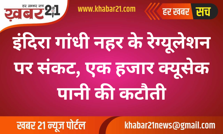 इंदिरा गांधी नहर के रेग्यूलेशन पर संकट, एक हजार क्यूसेक पानी की कटौती