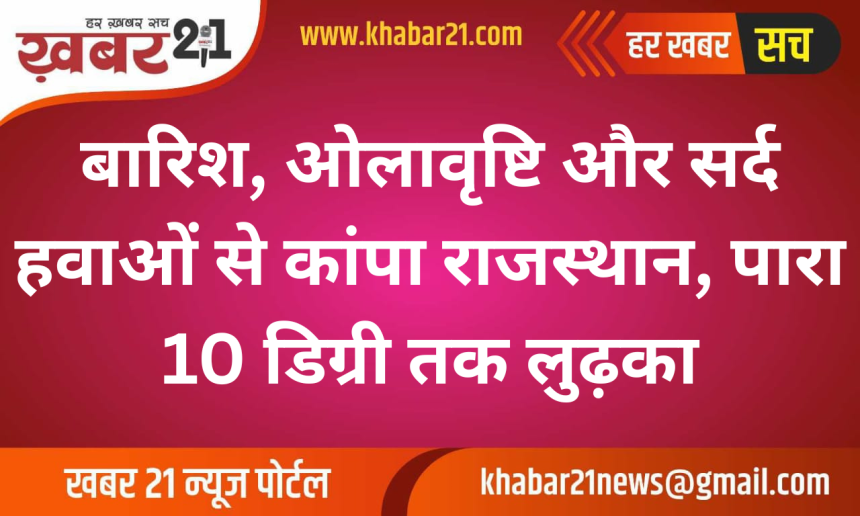 राजस्थान में वेस्टर्न डिस्टरबेंस के प्रभाव से मौसम ने अचानक करवट ले ली है। प्रदेश के कई जिलों में तेज हवाओं के साथ बारिश दर्ज की गई, जबकि कुछ इलाकों में ओलावृष्टि भी हुई। इस मौसमी बदलाव के चलते दिन और रात के तापमान में करीब 10 डिग्री सेल्सियस तक की गिरावट दर्ज की गई, जिससे ठंड का असर तेज हो गया है।