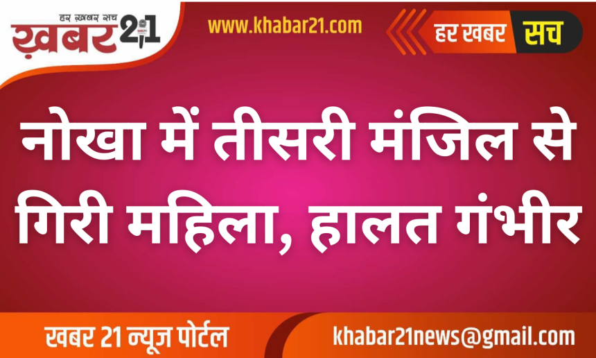 बीकानेर जिले के नोखा कस्बे से एक चिंताजनक घटना सामने आई है। जैन चौक क्षेत्र में शनिवार रात एक महिला के मकान की तीसरी मंजिल से गिरकर गंभीर रूप से घायल होने की सूचना है। घटना के बाद इलाके में अफरा-तफरी का माहौल बन गया।