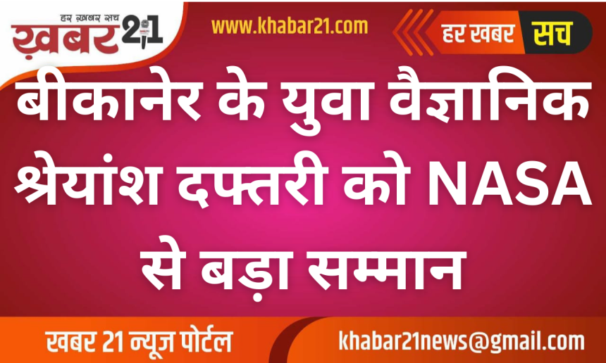 बीकानेर के लिए गर्व का क्षण है। बीकानेर गौरव अवार्ड से सम्मानित युवा वैज्ञानिक श्रेयांश दफ्तरी को अमेरिका के कैलिफ़ोर्निया स्थित पासाडेना में नासा द्वारा NASA Early Career Achievement Medal से सम्मानित किया गया है।