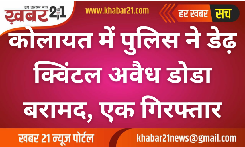 कोलायत में पुलिस ने डेढ़ क्विंटल अवैध डोडा बरामद, एक गिरफ्तार – Bikaner News